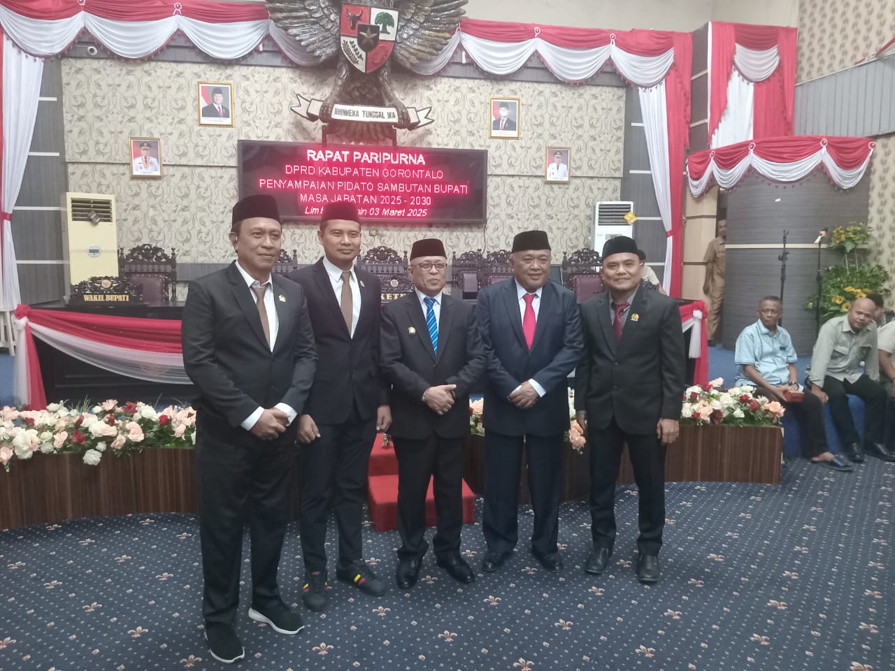 Thank you for reading this post, don't forget to subscribe!“Rapat Paripurna hari ini memiliki makna penting bagi perjalanan pemerintahan Kabupaten Gorontalo ke depan. Sebagai wakil rakyat, kami dari Fraksi Gerinda berkomitmen untuk mendukung program-program pembangunan yang dicanangkan oleh Bupati Sofyan Puhi, selama sejalan dengan aspirasi masyarakat,” ungkap Al-ghazali Katili saat ditemui usai acara.