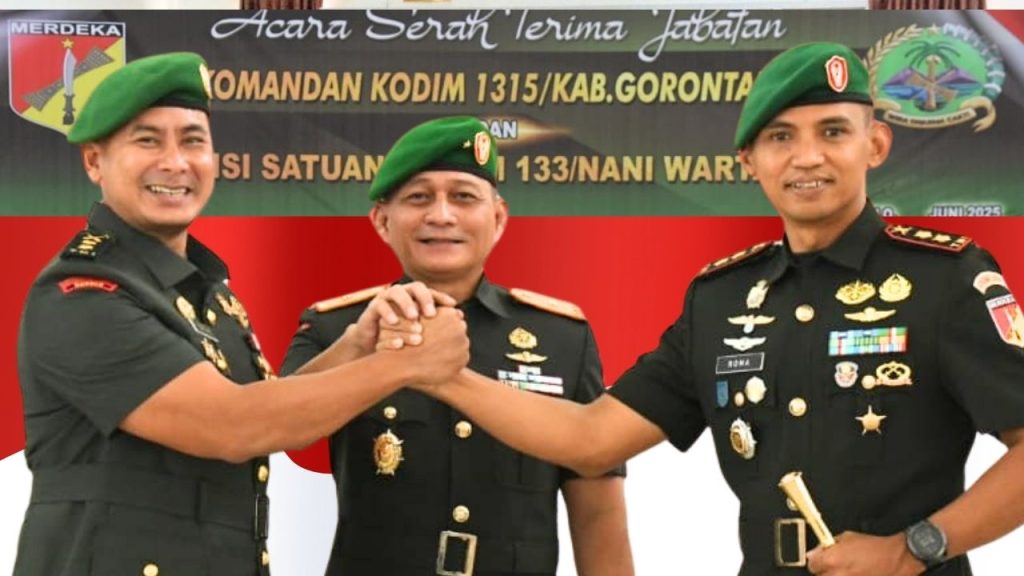 Goproinfo.com – Komandan Korem 133/Nani Wartabone Brigjen TNI Hardo Sihotang memimpin Serah Terima Jabatan (Sertijab) Dandim 1315/Kabupaten Gorontalo dan Tradisi Satuan Korem, Rabu (25/06/2025) di Aula Kusno Danupoyo.