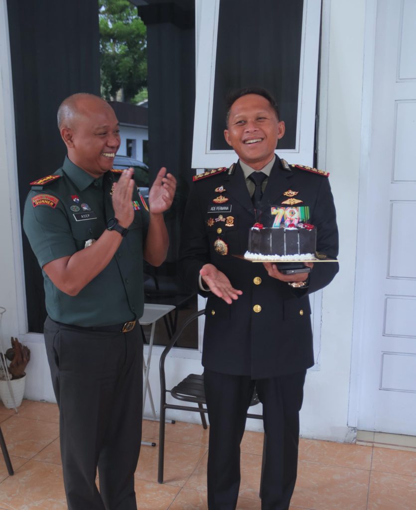 Gorontalo – Dandim 1304/Gorontalo Kolonel Arm Asep Ridwan, S.H., M.Ham beserta jajarannya memberikan kejutan kepada Kapolresta Gorontalo di kediamannya, Selasa (1/7/2025). Pasalnya Kedatangannya beserta jajaran perwira staf tanpa pemberitahuan sebelumnya ini bertujuan untuk memberikan memberikan ucapan selamat HUT Bhayangkara ke-79.