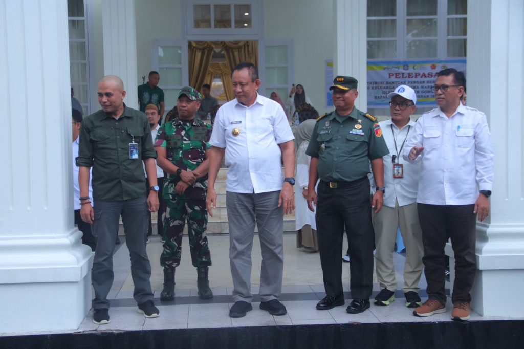 Gorontalo – Komandan Kodim (Dandim) 1304/Gorontalo, Kolonel Arm Asep Ridwan, S.H., M.Han., hadiri Pelepasan Distribusi Bantuan Pangan Beras Pemerintah yang dipimpin langsung oleh Gubernur Gorontalo DR. Ir. H. Gusnar Ismail, M.M., bertempat di rumah jabatan gubernur Kelurahan Heledulaa Selatan, Kecamatan Kota Selatan, Kota Gorontalo. Rabu (16/07/2025).