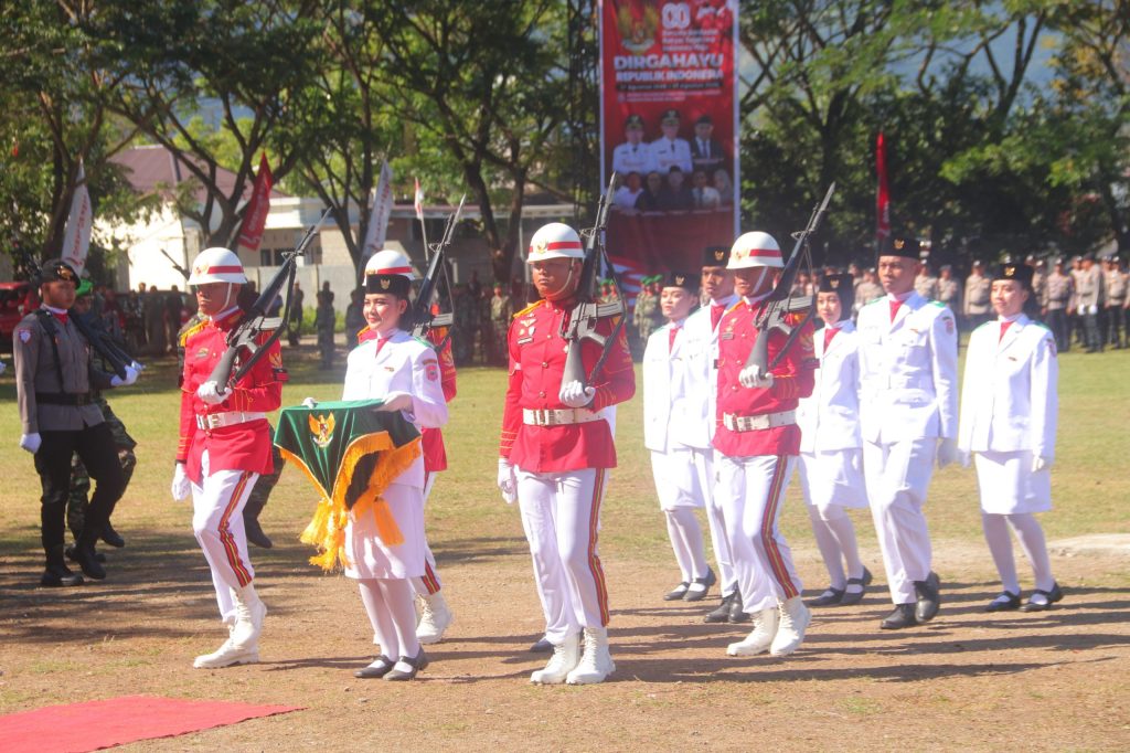 Dandim 1304/Gorontalo Kolonel Arm Asep Ridwan menyampaikan bahwa tema peringatan HUT RI ke-80 tahun ini adalah Bersatu Berdaulat, Rakyat Sejahtera, Indonesia Maju”, Tema ini, menurutnya, mencerminkan arah perjuangan dan visi besar bangsa Indonesia saat ini dan di masa depan.