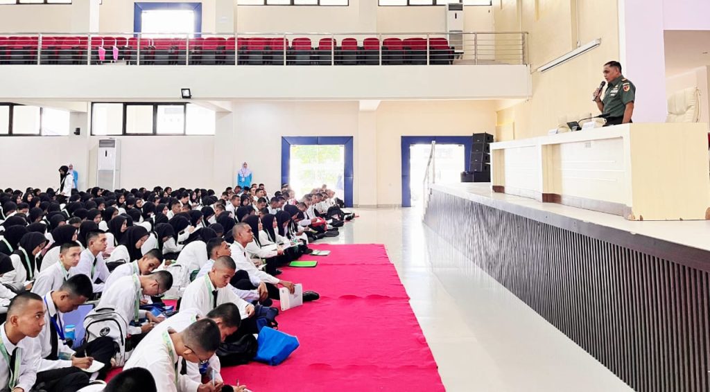 Gorontalo – Komandan Koramil (Danramil) 01/Kota Utara Kodim 1304/Gorontalo, Kapten Inf Kuslan Hilumalo hadir sebagai pemateri dalam kegiatan Pengenalan Kehidupan Kampus Mahasiswa Baru (PKKMB) Tahun Akademik 2025/2026 bertempat di Kampus Poltekkes Kemenkes Kota Gorontalo Jalan Taman Pendidikan, Kelurahan Moodu, Kecamtan Kota Timur, Kota Gorontalo pada Rabu (16/07/2025).