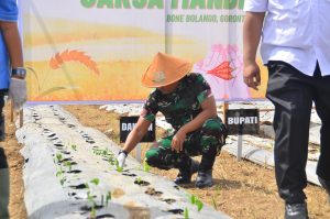 Gorontalo – Kodim (Dandim) 1304/Gorontalo Kolonel Arm Asep Ridwan, S.H., M.Han mengahadiri Kegiatan Program Jaksa Mandiri Pangan bertempat di Desa Moutong, Kecamatan Tilongkabila, Kabupaten Bone Bolango, Rabu (18/06/2025).