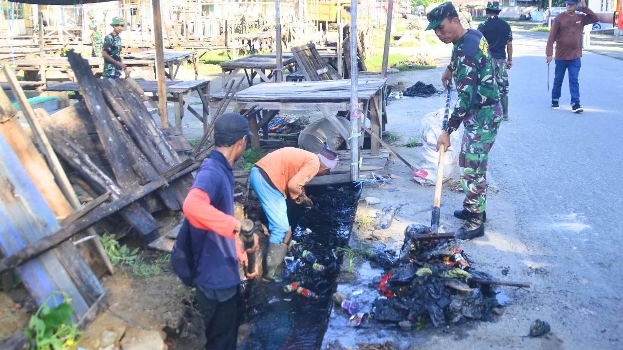 Kodim 1304/Gorontalo Gelar Karya Bakti Pembersihan Lingkungan Pasar Perbesar