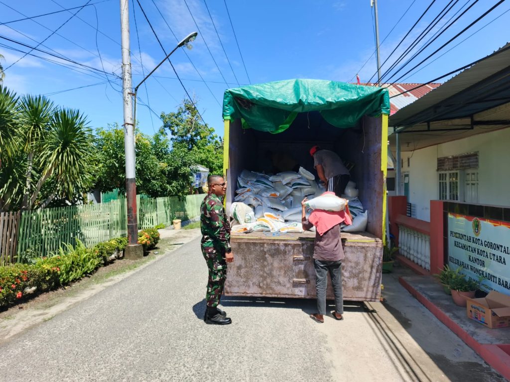 Gorontalo – Peran aktif Babinsa Koramil 01/Kota Utara Serka Nu’man, mendukung program pemerintah di wilayah binaannya yang turut mendampingi proses pendistribusian bantuan pangan berupa beras kepada masyarakat kurang mampu di wilayahnya binaannya. Jum’at (18/07/2025).