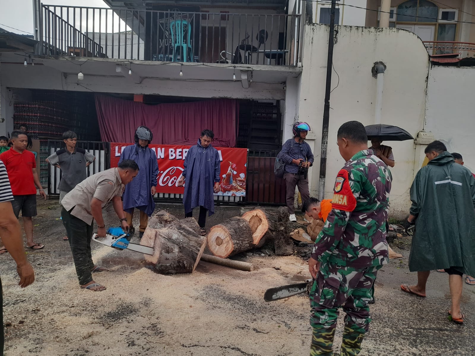 “Cuaca ekstrem tidak hanya menyebabkan pohon tumbang dan kemacetan, tetapi juga mengganggu aktivitas warga. Namun, berkat sinergi antara Babinsa, BPBD, dan warga sekitar, pohon tumbang berhasil dibersihkan menggunakan mesin pemotong kayu,” ujar Dharmawangsa.