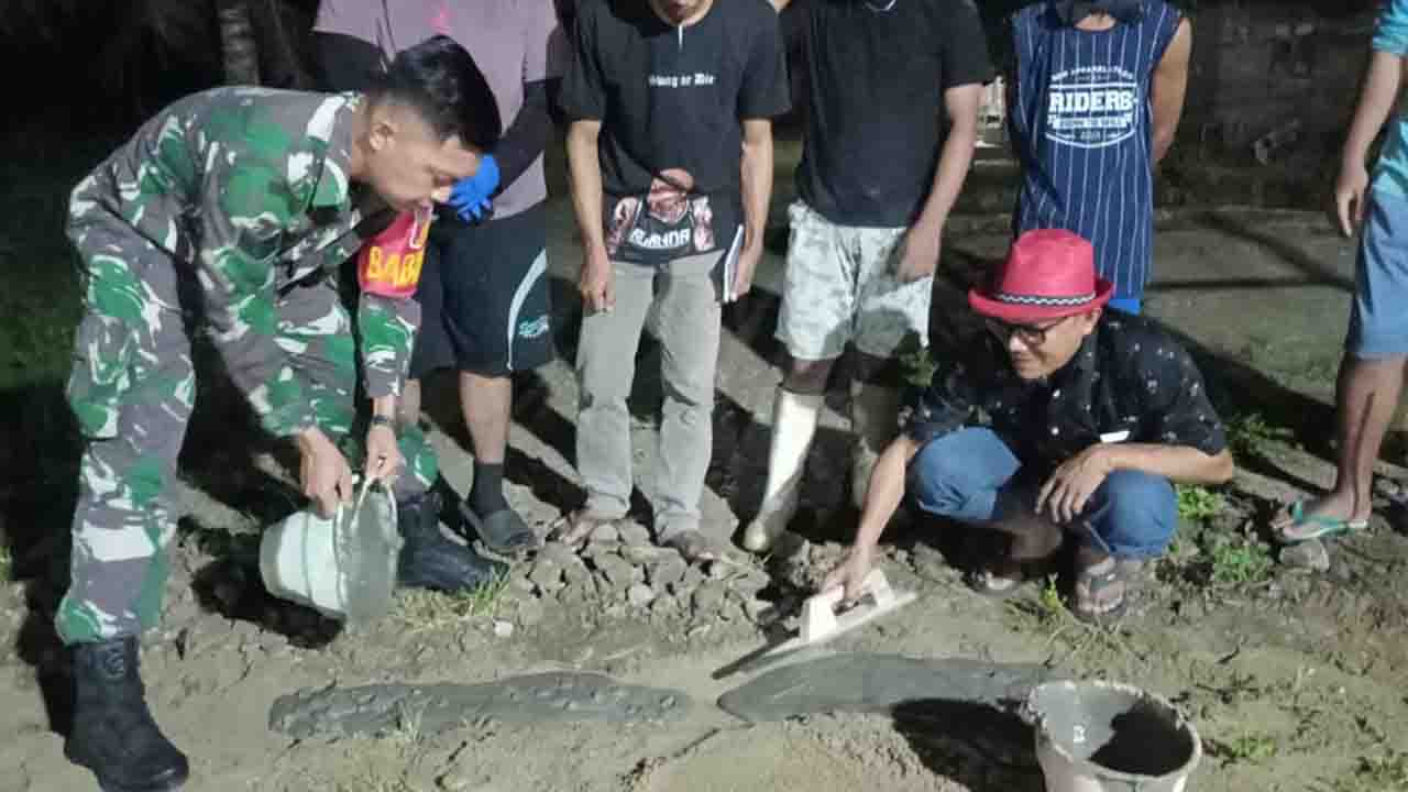 Tidak hanya memberikan arahan, Serma Andri turun langsung mengangkat material dan melakukan pengecoran bersama warga. Kehadiran Babinsa ini memberikan motivasi tambahan bagi masyarakat Dusun Iloheluma yang sejak awal sudah antusias membangun desanya.