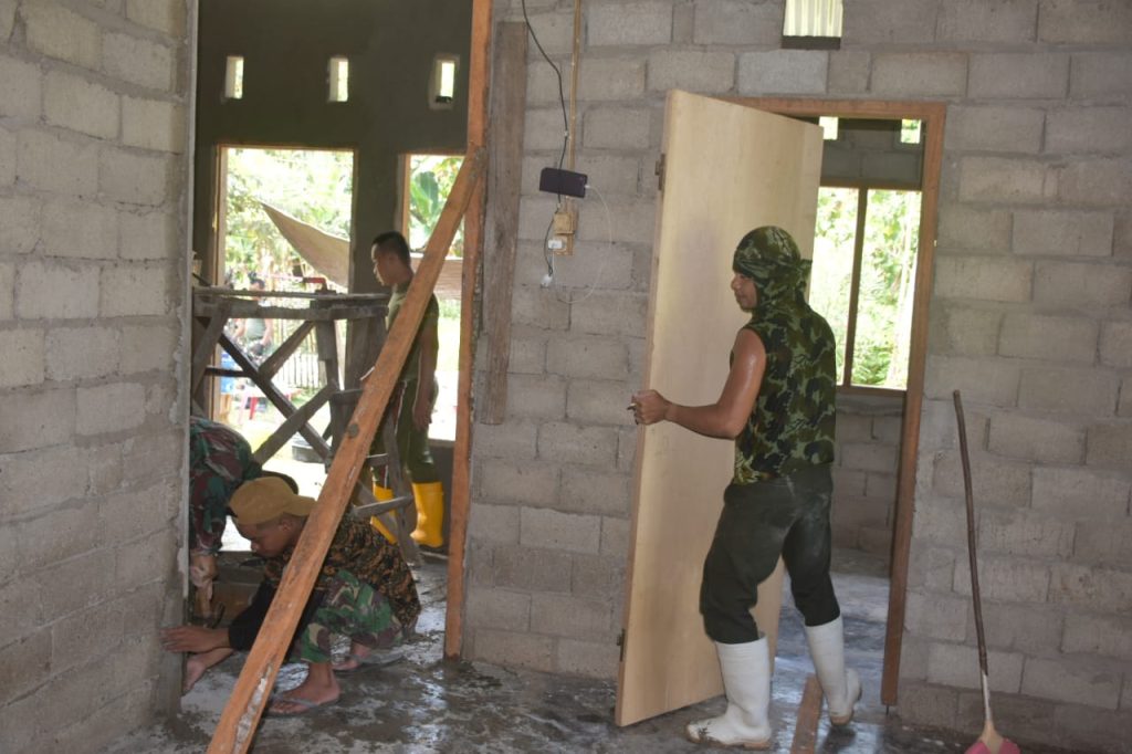 Dengan pengalaman yang mumpuni di bidang konstruksi, Sertu Winaryo tidak hanya memberi instruksi, tapi juga terjun langsung membantu para anggota dalam proses plester dinding dan pemasangan risplang depan. Semuanya dilakukan dengan penuh keikhlasan dan semangat kekeluargaan.