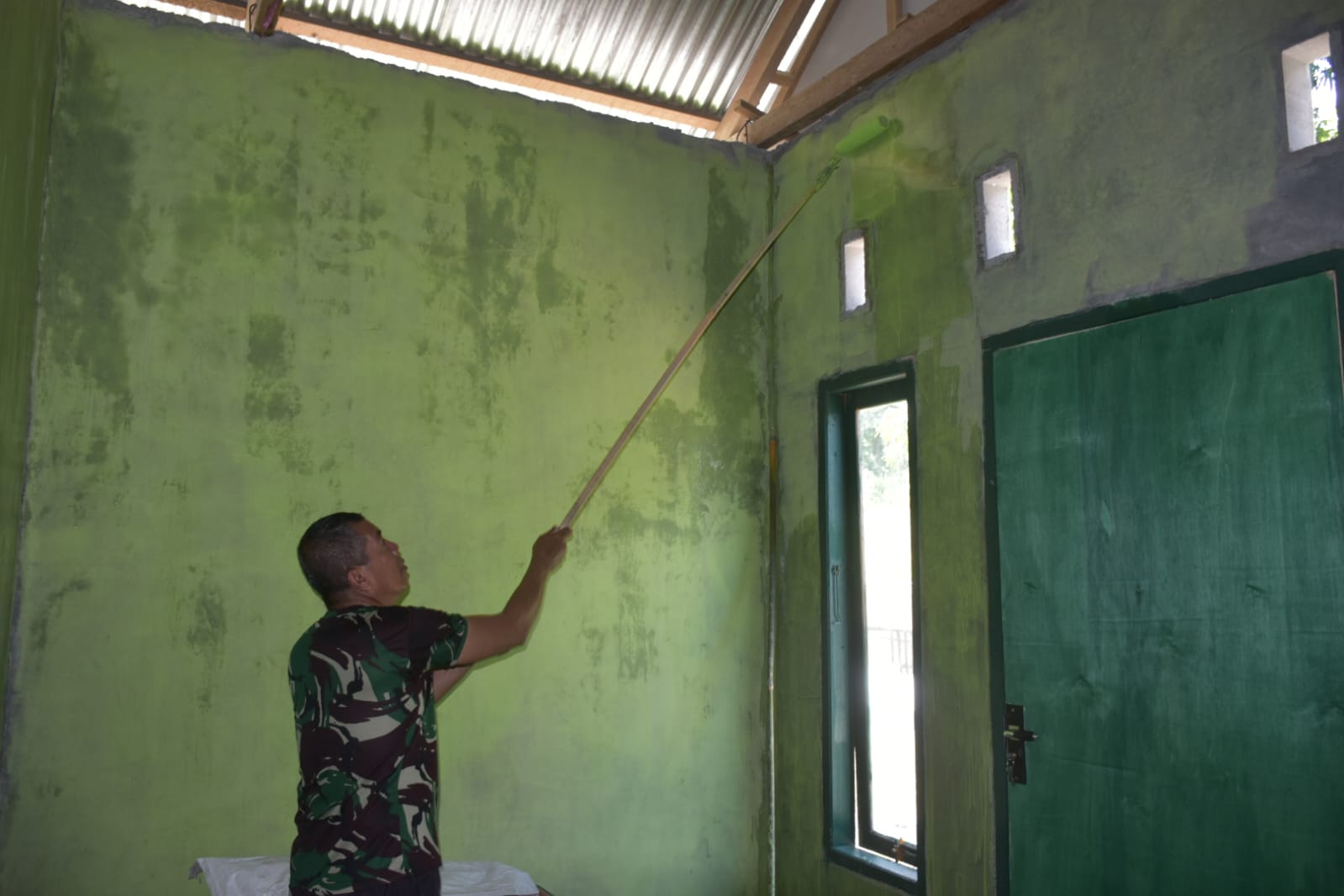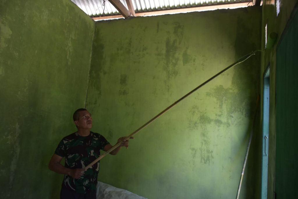 GORONTALO – Komitmen TNI dalam membantu masyarakat terus diwujudkan melalui program TNI Manunggal Membangun Desa (TMMD). Dalam pelaksanaan TMMD ke-125 Kodim 1304/Gorontalo, Kapten Inf Darmawangsa yang menjabat sebagai Kepala Koordinator Renovasi Rumah Tidak Layak Huni (RTLH) menunjukkan kepedulian dan dedikasi luar biasa dengan turut serta membantu langsung proses pengecatan dinding rumah milik Bapak Ali Datubiya, salah satu penerima manfaat program RTLH. Selasa (29/07/2025).
