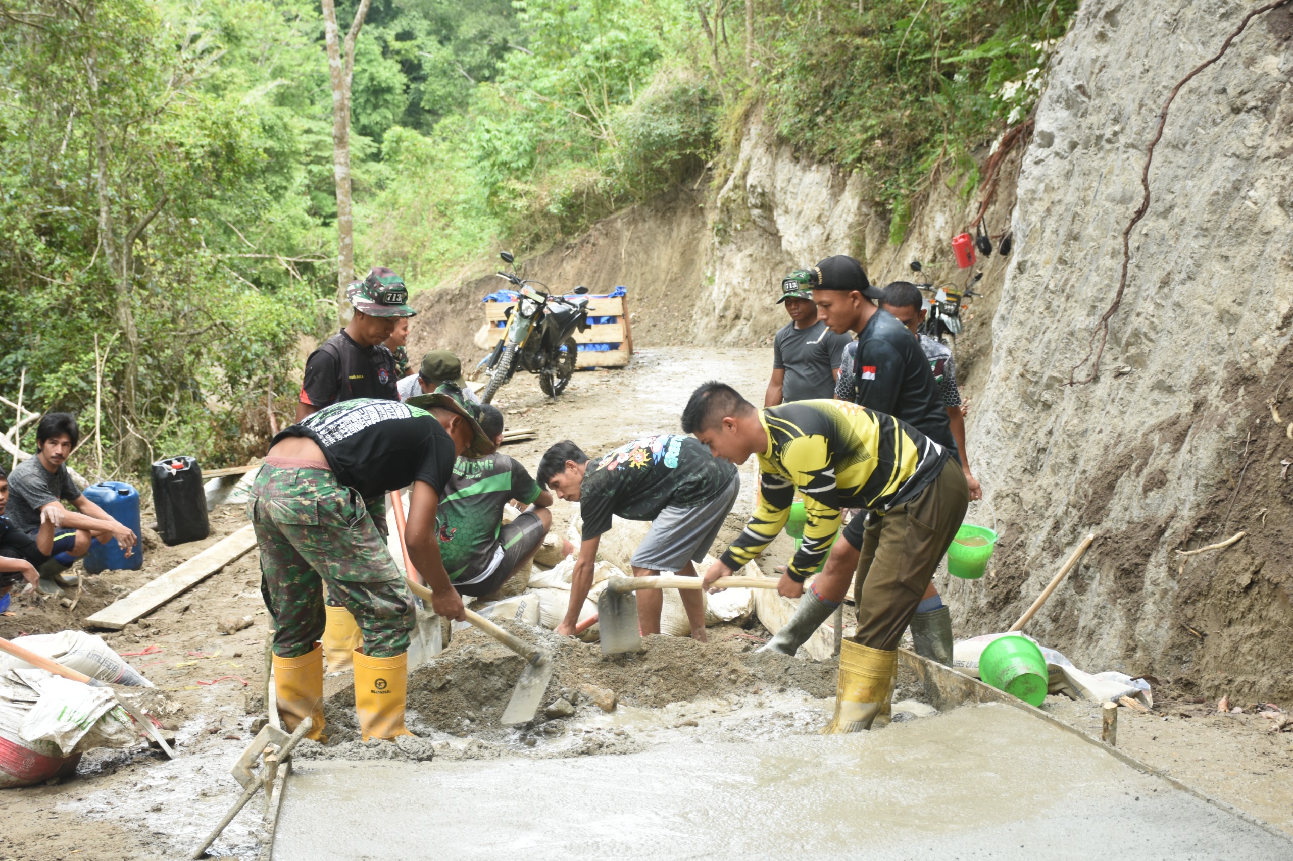 Warga Bersama Anggota Satgas TMMD Ke-125 Berjuang untuk Menyelesaikan Jalan Rabat Beton